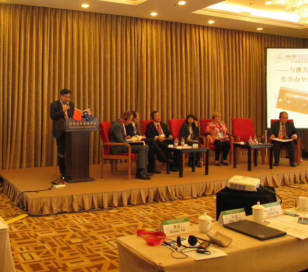冯渊副校长在发言中就我校及我校中澳合作办学项目做了介绍,与参加论坛的代表分享了中澳合作办学的成功经验,同时提出了存在的问题和未来发展的建议,希望通过建设联盟、搭建学生发展平台以及信息交流平台,进一步促进中澳师生交流。他的发言获得与会代表的一致好评。