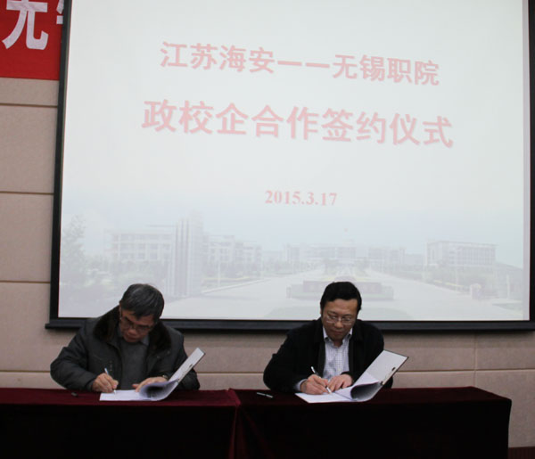 会议由龚方红校长主持。朱爱胜书记首先致欢迎词,他代表全校师生对海安县的各位领导、专家表示热烈欢迎,并对该县长期以来给予学校的关心和支持表示衷心的感谢。朱书记表示,学校将高度重视、珍惜机会,加强与海安县的联系沟通,对接合作项目,创新合作方式,形成合作机制,不断推进政校企合作。之后,龚方红校长简要介绍了学校的历史沿革、院部设置、专业建设、人才培养、科技服务、学生就业等情况。高斌副县长在发言中详细介绍了海安的经济社会发展状况,并表示海安的产业结构与我校专业设置匹配度很高,愿意进一步加深合作。随后,我校机械技术学院院长张铮、控制技术学院院长黄麟和物联网技术学院执行院长刘全胜分别进行了科技成果推介。接下来,我校冯渊副校长、华坚副校长分别与海安科技局、人社局签订了科技与人才合作协议,吴慧媛教授与江苏新华胶带有限公司签订了项目合作协议。最后,会议还进行了分组对口交流,针对科研项目对接、技能培训与人才引进等进行了深入探讨。(党委宣传部 撰稿/摄影:宋瑞超;审核:储开峰)