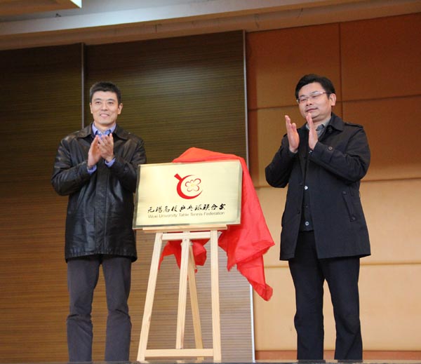 成立大会由无锡市广播电视大学党委副书记王仁刚主持,会议审议并通过了《无锡高校乒乓球联合会章程》和首届领导机构组成人员名单。无锡市教育局副局长符菊成、体育局副局长汪克强为市高乒联揭牌,并向名誉会长、名誉副会长颁发聘书。我校当选联合会会长单位,朱爱胜书记当选为高乒联会长,副书记谈向群、党院办主任罗嘉军、体育部副主任华宝元分别当选副会长、秘书长和常务秘书长。