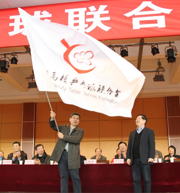 12月13日下午,无锡市高校乒乓球联合会(以下简称高乒联)成立大会暨“快乐乒乓网”友谊赛在我校体育馆举行。无锡市原副市长吴建选、教育局副局长符菊成、体育局副局长汪克强、市乒乓球协会主席张健、市乒乓球总教练惠钧,我校党委书记朱爱胜、副书记谈向群以及来自全市15所高校的领导、嘉宾等100多人出席成立大会。
