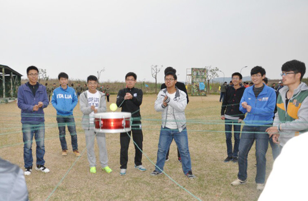 为期一天的素质拓展训练,由破冰活动、齐心协力、急速60秒、挑战150(动感颠球、不倒森林、南水北调、团队击掌)等项目组成。破冰热身中,各队队员在教练的指导下,起队名、画队标、创队训、唱队歌,场面热闹非凡。在接下来的比赛项目中,同学们参与热情高涨,士气高昂,较好完成了各项比赛。其中,“德玛西亚”队(机械电子11441班)获得总冠军。