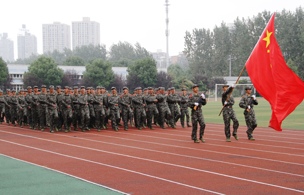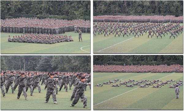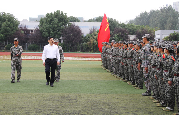 9月30日上午,我校2014级新生军训汇报表演暨总结表彰大会在太湖校区田径场隆重举行,4000多名新生结束了为期2周的军训生活,以全新的姿态和精神面貌迎接校领导、部队首长和众多师生的检阅。