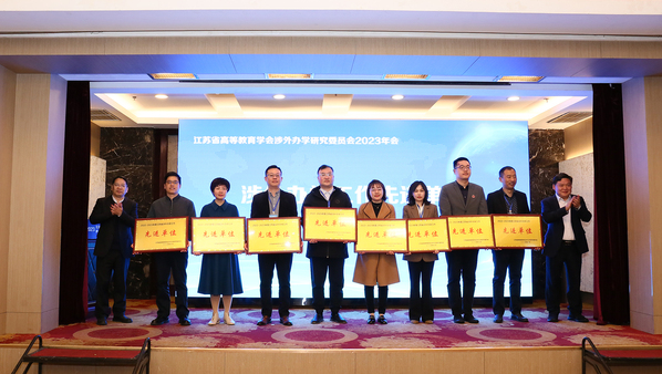 3月28日至29日,2022-2023年度江苏省高等教育学会涉外办学研究委员会年会在徐州召开。会上对全省涉外办学先进单位进行了表彰,我校荣获2022-2023年度江苏省涉外办学先进单位。