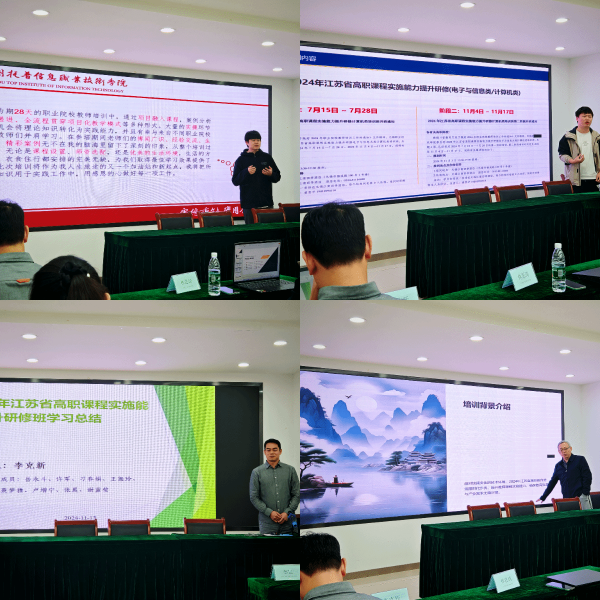 物联网学院党总支书记谢欢在总结中对全体学员能够克服家庭困难,全身心投入学习,顺利完成培训任务表示热烈祝贺,并对学员们在培训期间展现出的优秀表现给予了高度评价。希望学员们返校后能够继续深化学习成果,将所学知识和技能应用于教育教学改革与管理能力提升等实际工作中,为推动各自学校的高质量发展贡献力量。谢欢还鼓励学员们在自己的工作岗位上积极运用先进的职业教育理念与方法,不断提高工作成效,为江苏高职计算机类专业的快速发展添砖加瓦。