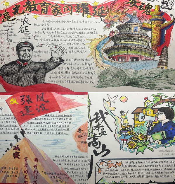 活动中,同学们充分发挥自己的创造力和想象力,用手中的画笔描绘出自己对学风建设的理解和感悟。一幅幅色彩鲜艳、内容丰富的手抄报作品,不仅展现了同学们扎实的绘画功底,更表达了他们对优良学风的向往和追求。从手抄报的内容来看,同学们分别以“教育家精神”和“延安精神”内容为主,强调了勤奋学习的重要性,用生动的事例激励大家珍惜时光,努力拼搏。