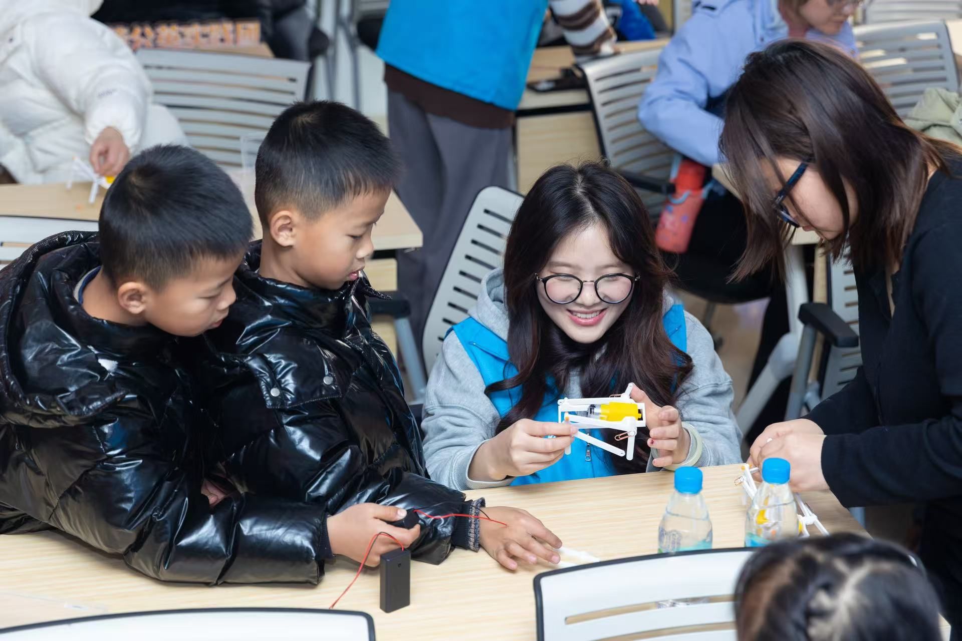 志愿者通过分发机器狗的组装零件,指导青少年们共同完成机器狗模型,引导青少年们通过亲眼观察、亲手操作,零距离体验机器人技术的奥妙,进一步感受机械制造业智能化发展的强劲动能,激发他们对未知科技的憧憬,培养他们传承智造重镇——胡埭代代传承的奋斗基因、敬业品质、创新胆略与科技情怀。