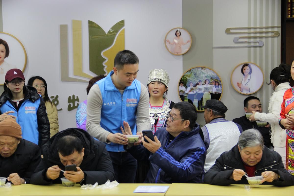 活动现场,志愿者们身着统一服装热情洋溢,井然有序地忙碌在活动现场。他们为老人们盛上熬制的腊八粥,稳步端送给在场的每一位老人,确保老人们能在这寒冷的冬日里及时品尝到这份温暖与甜蜜,整个过程充满着对老人的尊重与关心、每一碗腊八粥都传递着浓浓的敬老情。