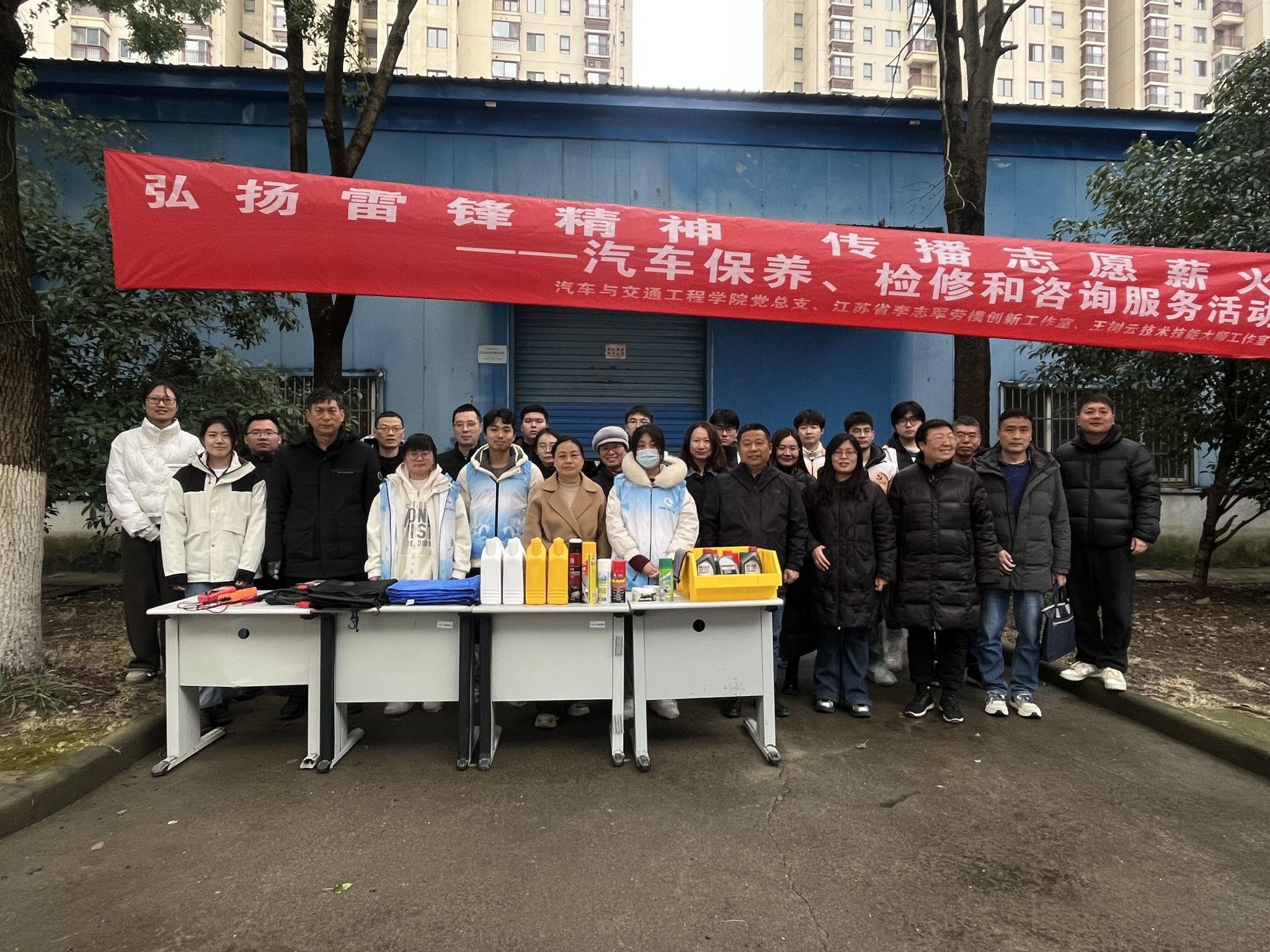 在“学雷锋纪念日”到来之际,汽车与交通工程学院党总支携江苏省李志军劳模创新工作室、江苏省李志军技能大师工作室、王树云技能大师工作室,利用专业特长,为全校教职工车辆提供车辆检测与诊断、保养维护、汽车使用咨询等服务,为教师的安全出行提供技术保障。
