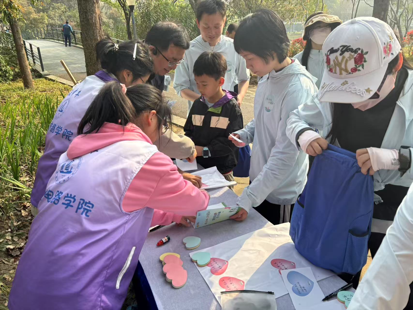 作为无锡“太湖湾科创带”的重要载体,海归小镇以"集成电路+智能网联"为产业定位,其充满未来感的科创园区与毗邻的千年巡塘古镇形成鲜明对比。为保障这场大型活动顺利开展,志愿者们提前一周开展专项培训。他们反复勘察5公里徒步路线,在尚贤河湿地公园的曲径回廊、巡塘古镇的青石板路等关键节点设置6个服务岗,并设计以集成电路元素为主题的集章卡和互动游戏。在起点处志愿者们分工明确,各司其职,物资组的同学将定制帆布袋、矿泉水、急救包等物资分装完毕。在生态绿廊段,讲解组志愿者手持电子导览屏,为参与者讲述尚贤河湿地"海绵城市"的生态智慧;于巡塘古桥旁,历史组的同学以情景剧形式演绎古镇的千年文脉,用行动转化为服务社会的生动实践。志愿者集成电路24322班郑乐乐说:“每一次与徒步者的默契击掌,都迸发着携手共进的火花,在欢声笑语中解锁游戏印章及礼品。”