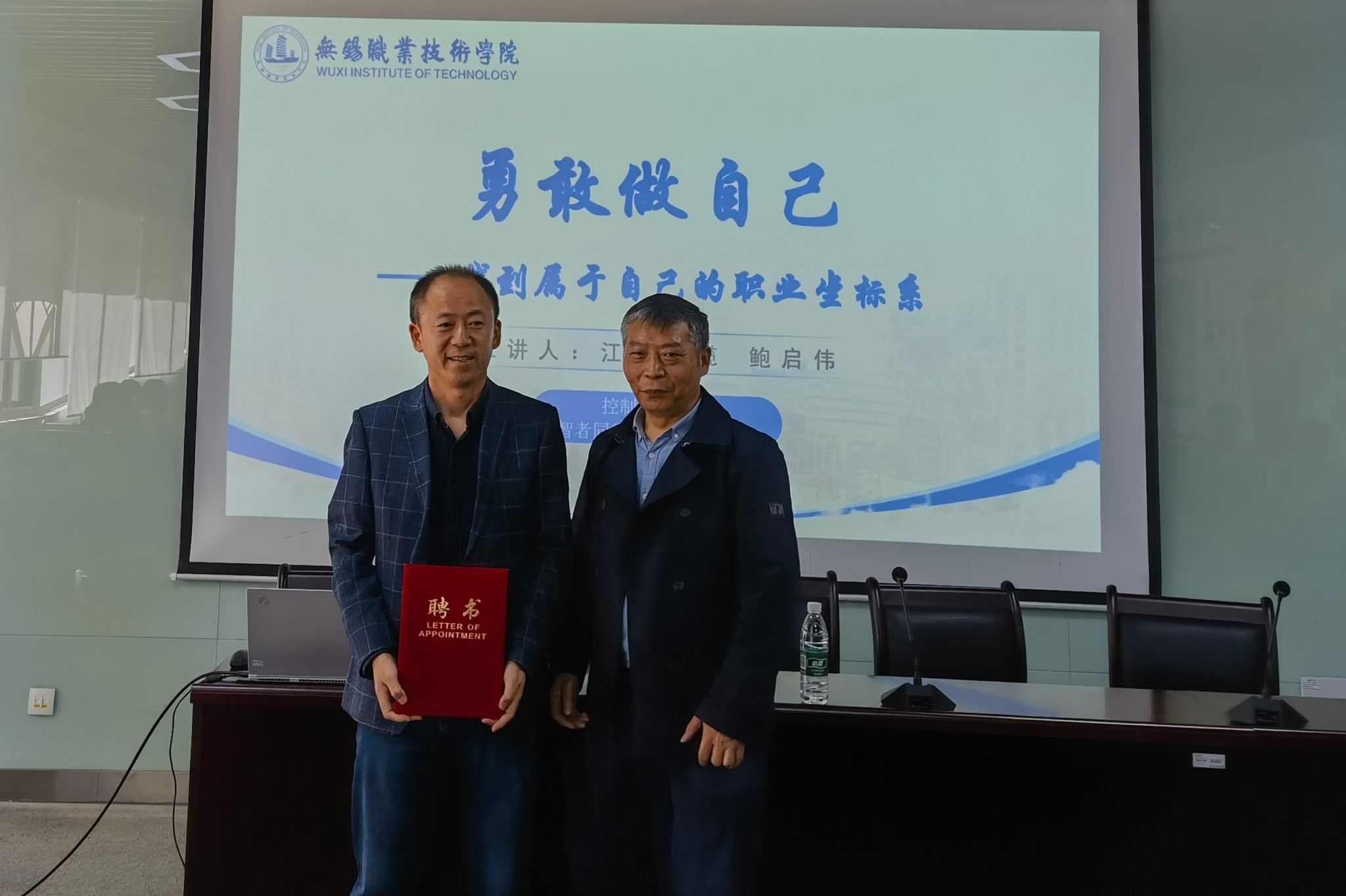 活动开始前,控制工程学院党总支书记曹秀中为鲍启伟颁发校外职业导师聘书。鲍启伟介绍了江南电缆作为中国线缆行业领军企业,近年来加速数字化转型,推动智能制造和绿色工厂建设,亟需兼具技术能力与数字素养的复合型人才。他从自身成长和实践经验讲起,以技术骨干到大国工匠的历程,激励学生树立职业理想,传递精益求精的工匠理念。现场学生反响热烈,纷纷表示讲座使同学们对行业趋势有了清晰认知,更坚定了投身智能制造的职业理想。