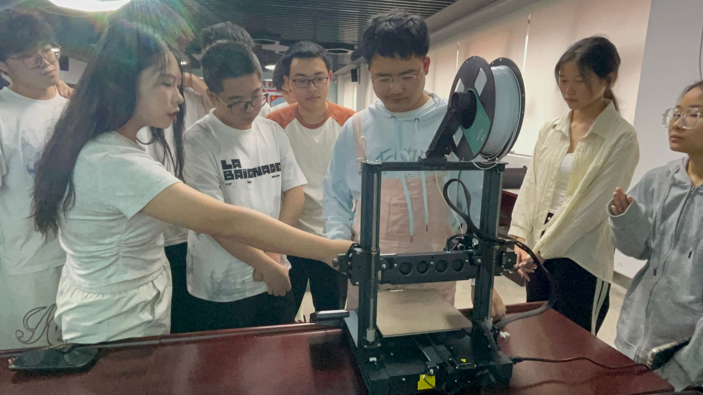 活动开场,协会同学将3D打印机作为重点讲解对象。他们手持精心制作的PPT,配合实物操作,从3D打印机开机时机械臂的自检动作讲起,详细拆解基础的操作流程。“打印平台调平是关键步骤,误差要控制在0.1毫米以内,否则打印件容易翘边。”张佳音边说边用专业工具进行演示,随后又深入讲解打印温度、填充密度等参数对成品质量的影响。现场的同学们聚精会神,有的凑近机器仔细观察,当看到数字模型从喷头中层层堆叠,逐渐变成一个立体的小零件时,惊叹声此起彼伏,不少同学还掏出手机拍摄,想要将这份科技的奇妙永久留存。