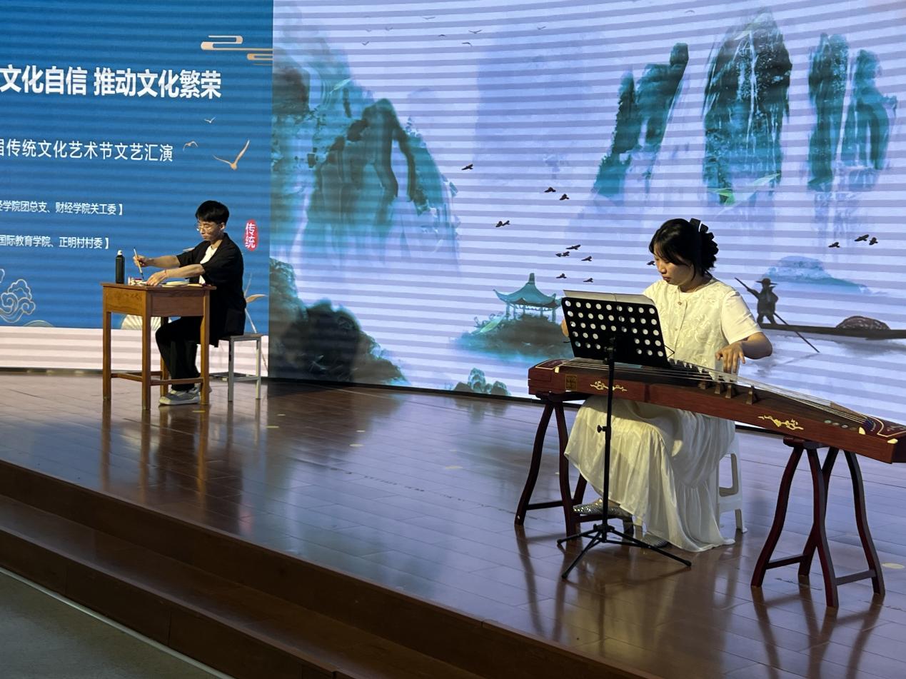 以文化浸润校园,用艺术点亮青春。为弘扬中华优秀传统文化,坚定文化自信,提升校园文化品质,6月18日晚,由财经学院主办,国际教育学院和洛社镇正明村村委协办的“赓续历史文脉 坚定文化自信 推动文化繁荣”第八届传统文化艺术节文艺汇演在敏行楼一楼路演大厅举行。学院教师代表、校友代表、毕业生代表以及100余名同学参加活动。