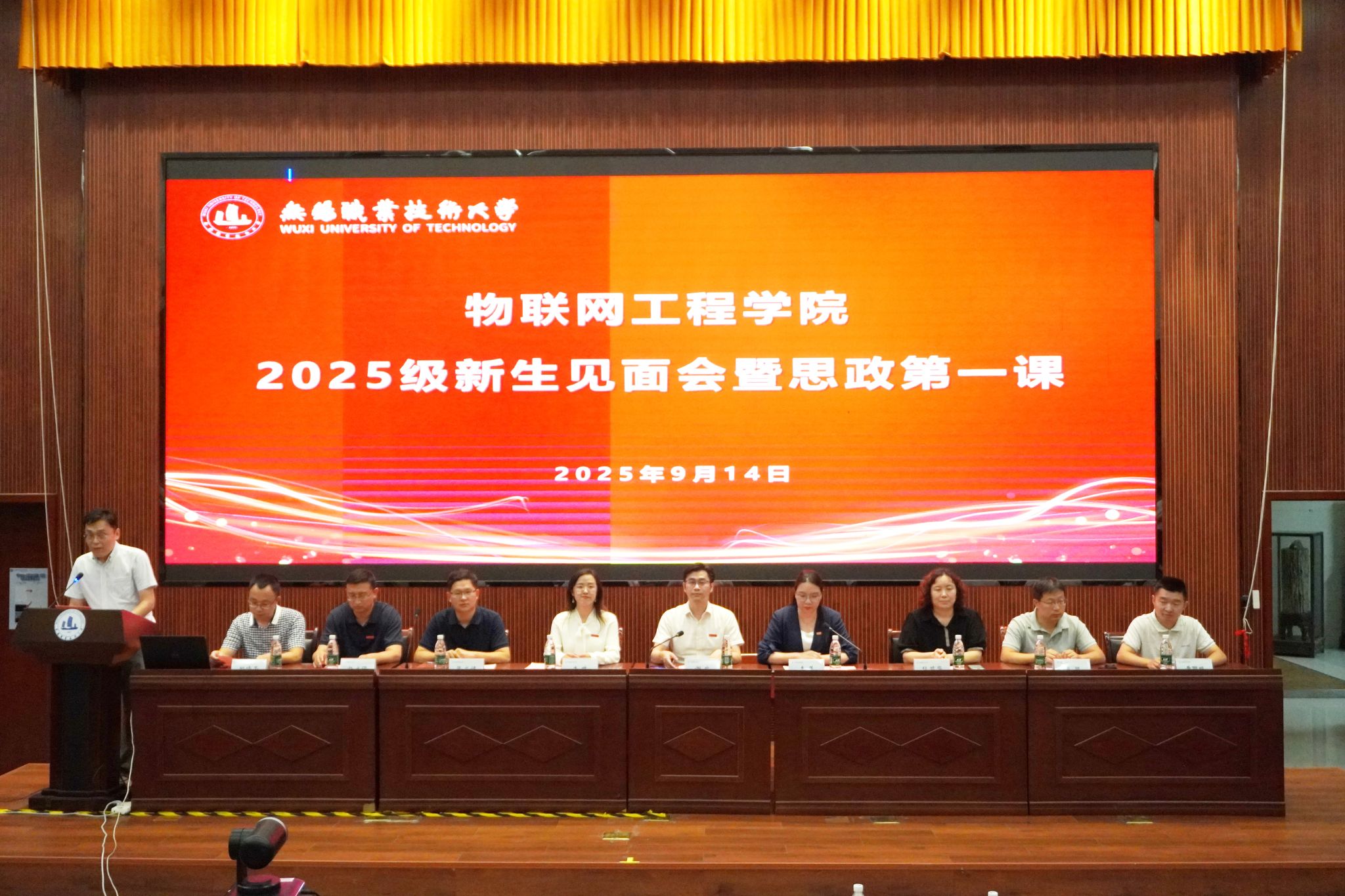 9月14日晚,物联网工程学院在国际交流中心一楼报告厅举行2025级新生见面会暨“思政第一课”。学院党政领导、各系主任及全体辅导员出席会议,2025级全体新生通过线上线下相结合的方式参会。