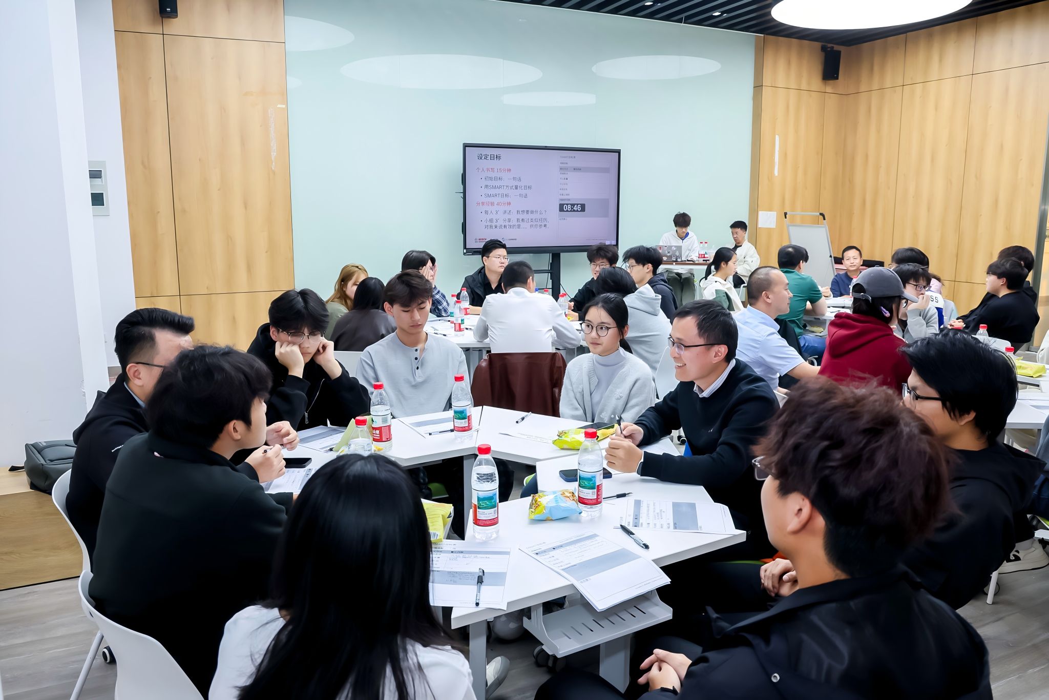 本次小组会全程约4小时。会议以10分钟开场仪式启动,内容包括破冰游戏、共同承诺确认及冲突解决方法介绍。随后进入75分钟的反思与“停车场”环节,要求成员提前准备、限时分享,并就“停车场”议题展开集中讨论,同学们将困扰已久的专业学习、职业规划、技能提升等话题拿出来,在之后的60分钟深入挖掘阶段,企业专家们聚焦问题确认、深度对话,以学长或朋友的身份与同学一起敞开心扉,产生共鸣,说出内心真实的想法,现场气氛轻松热烈,掌声不断。最后的SMART 目标设立环节使同学们有了一个清晰、可执行、可追踪的行动计划,极大地提高目标达成的可能性。参与活动的学生纷纷表示,此次交流不仅让他们对行业前沿动态有了更清晰的认知,更对个人职业规划有了更明确的方向,对专业学习和个人发展充满了动力。
