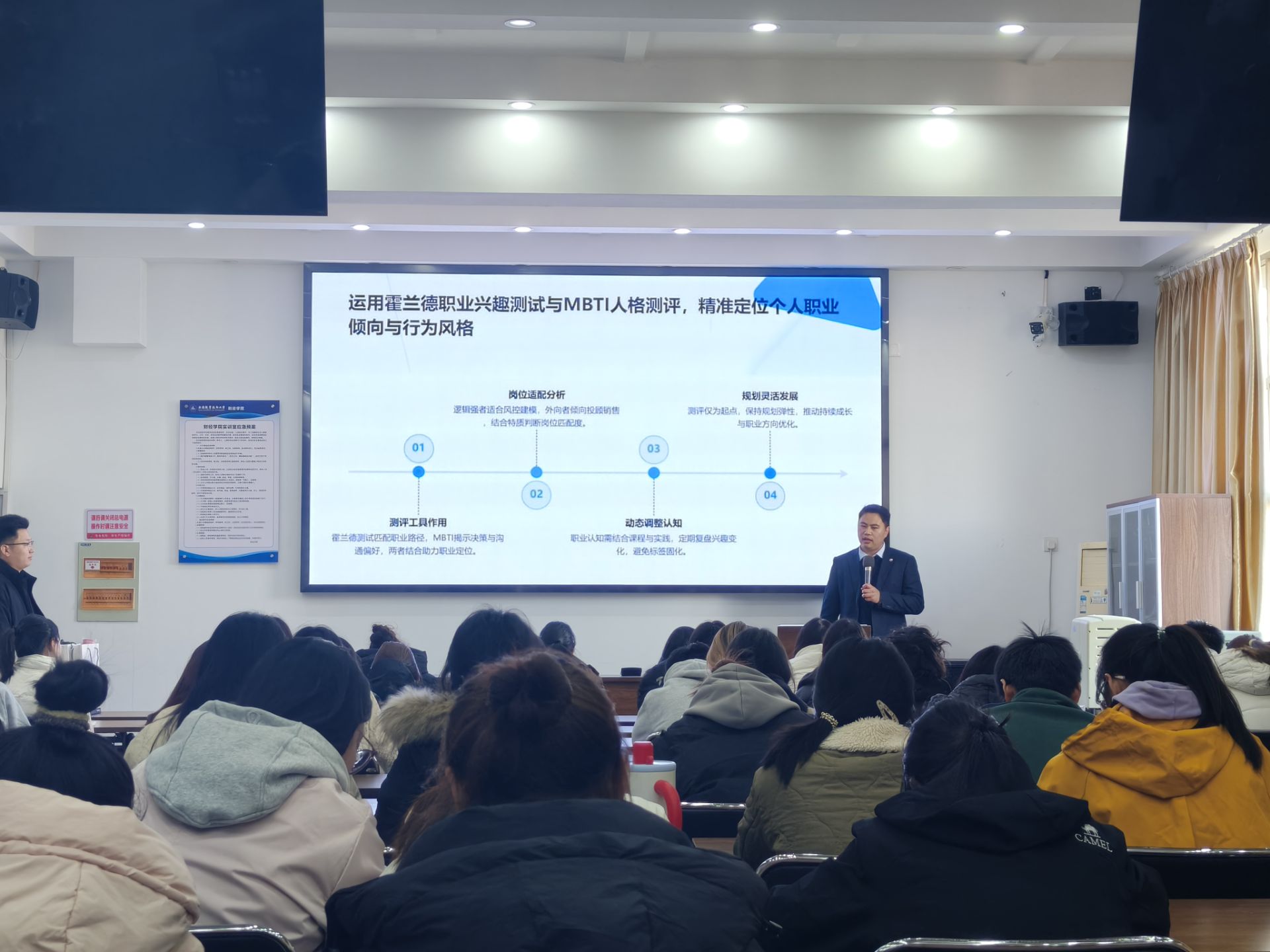 为帮助财经学子锚定职业方向,提升就业核心竞争力,11 月 18 日下午,财经学院 “TA 力量” 系列讲座之《财经人的生涯规划与成长之道》在教 2-308 教室举办。本次讲座特邀华龙证券机构业务总监、注册国际投资分析师(CIIA)浦晨龙交流分享,80 余名学子到场聆听,现场学习氛围浓厚。