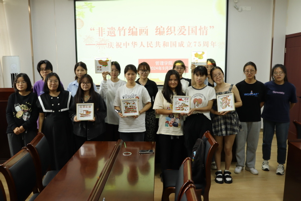 非遗竹编画,献礼新中国!为弘扬中国传统非遗文化,增强学生爱国之情,传承红色基因赓续红色血脉,管理学院以新中国成立75周年为契机,于9月25日下午在明德楼J1-404,开展“非遗竹编画,编织爱国情”的手工竹编画制作爱国主义教育活动。此次活动吸引了20余名党员和入党积极分子参加,让爱国之心融入到非遗文化中。