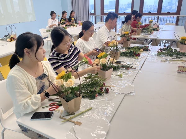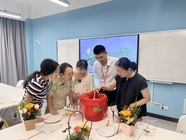 活动包括“乐享生活·手作插花活动”和“非遗传承·水性漆扇制作”两项内容。插花选用向日葵、玫瑰、康乃馨等多种象征阳光、温暖,能够代表体现教师这个职业正能量的花卉,教师们因香而聚、与花邂逅,共享了一个花香四溢的教师节。漆扇作为非物质文化遗产,承载着深厚的文化底蕴和精湛的中国传统手工技艺,通过漆扇制作,教师们更加深了对中国传统文化的了解,坚定了文化自信,厚植了民族自豪感。