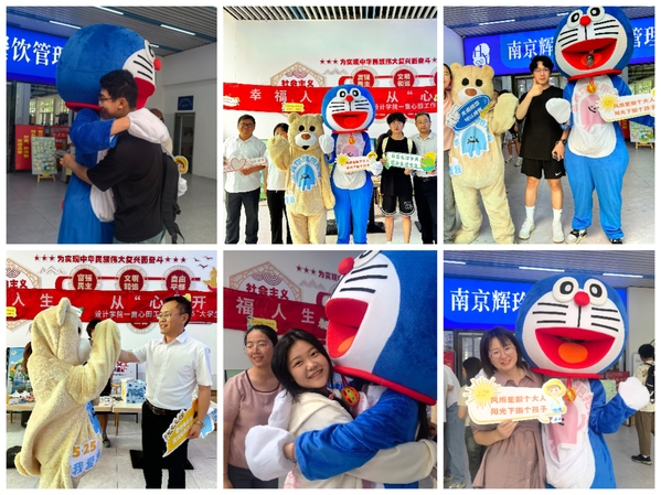 5月22日中午,“抱抱传情,温暖同行”活动在一食堂门口暖心开展。过往的老师和同学纷纷与人偶互动拥抱,通过拥抱缓解压力获得积极情绪体验,活动现场弥漫着爱的气息,温暖而和谐。