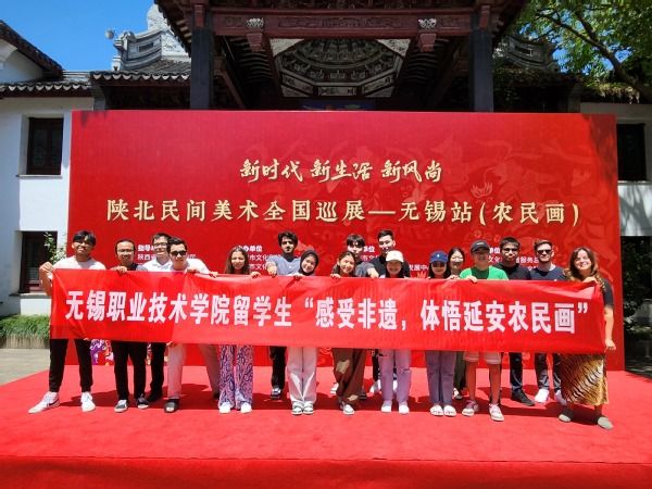 为深入贯彻习近平总书记在文化传承发展座谈会上精神,让传统文化“活起来”,同时进一步增进来华留学生对中华文化的深入了解,激发来华留学生们对中国传统非遗文化的浓厚兴趣,学校组织来自5个国家的15名留学生参观由陕西省文化和旅游厅、江苏省文化和旅游厅指导的“陕北民间美术全国巡展——无锡站(农民画),体验“陕北非遗”的独特魅力。
