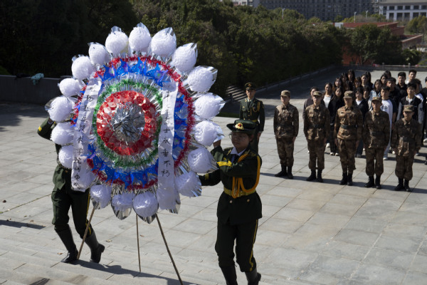 宜兴革命烈士陵园内庄严肃穆,全体肃立。学生代表向烈士纪念碑敬献花圈,随后全体默哀,缅怀为国家与民族英勇献身的英烈。庄严肃穆的仪式寄托着延绵不绝的哀思之情,也昭示着慨然前行的奋发之志。