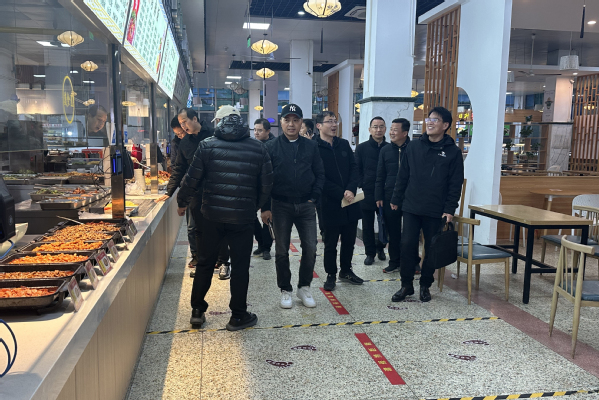在后勤工作实地走访环节中,与会人员一行参观了我校食堂。在全面落实《关于规范和加强高等学校学生食堂工作的指导意见》的背景下,2023年我校以高站位行务实之举大力推进食堂改革,走出无锡高职教育食堂改革的第一步,为片区实施新时代高校餐饮服务改革提供了实践案例。