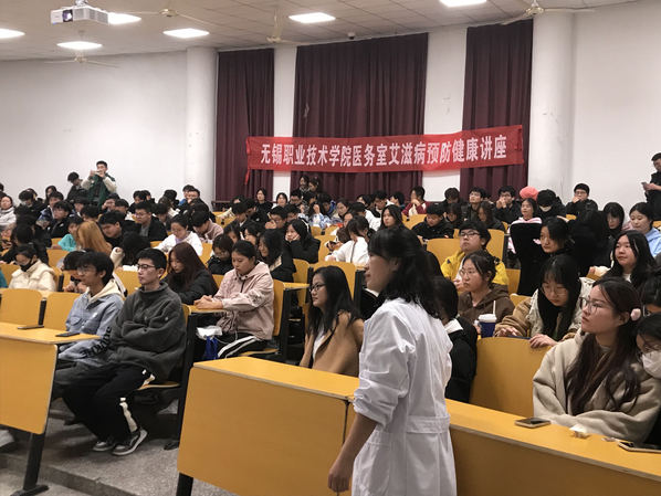 活动筹备阶段,学生志愿者对活动现场进行防艾、防结核知识展板布置,并发放健康宣传手册。活动过程中,校医务室医师彭金莉详细介绍了“红绿双丝带”的主旨和内涵,并号召学生树立健康第一责任人意识,增强防护意识和能力,为实现零艾滋、零结核的健康中国贡献自己的力量。无锡市滨湖区疾控中心专病管理专家肖枥璠、王敏芳、周俊燕,分别以《艾滋病预防知识讲座》、《肺结核防治知识讲座》和《“补一堂”成人礼》为题开展讲座。活动还创新性地增加了游戏互动、问题抢答等互动环节,与会学生们积极发言,现场气氛活跃。