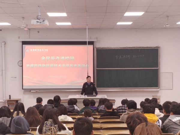 为进一步加强学生电信网络诈骗防范安全教育,提高同学们反诈防骗意识,提升自我保护能力,切实减少电信网络诈骗案件的发生,11月16日晚,物联网技术学院邀请无锡市公安局滨湖分局雪浪派出所民警来校开展“全民反诈进校园”专题宣讲教育活动,物联网学院2023级600余名学生参加。