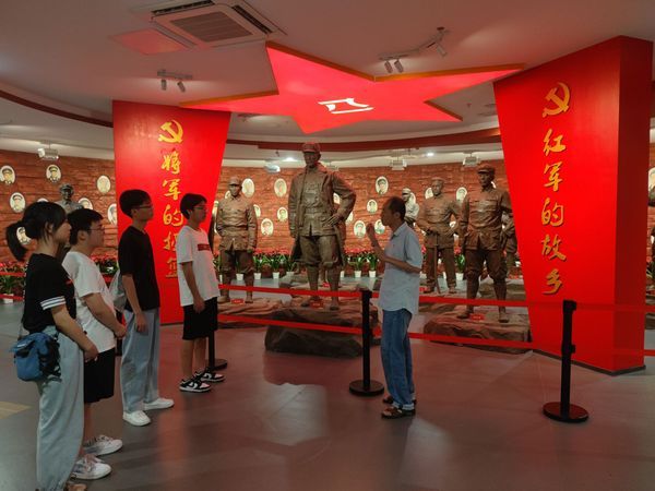 7月6日下午,社团成员首先来到大别山革命历史纪念馆,了解皖西革命史、著名烈士事迹和皖西籍108位开国将军的事迹,这些重要的革命时刻通过辉煌历史,浩气长存,将军摇篮,红韵流长四个板块展现出来。在参观过程中,老师为同学们进行现场教学,介绍淮海战役的经过及将军故乡的来源,让同学们对“将军乡”这段历史有了更加清晰的认识和了解。大家一起默记下大别山精神和红四方面军训词,深刻体会到皖西儿女光荣革命斗争史和不屈不挠、前仆后继的革命精神。