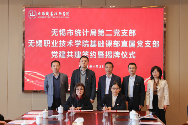 4月25日上午,无锡市统计局第二党支部与我校基础课部直属党支部举行党建共建签约仪式。统计局副局长杨晋超、王骏,我校党委书记龚方红、纪委书记李衔、组织部副部长徐瑾以及双方党员代表共31人出席活动。活动由基础课部主任、支部委员王志萍主持。