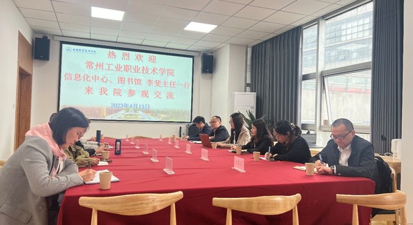 413日下午,常州工业职业技术学院信息化中心主任李斐一行6人来我校交流智慧图书馆建设、学校信息化建设等工作,我校图书馆馆长韩冰、信息化中心主任吴乃鑫,及相关负责人在图文信息中心A210会议室接待了来访人员。