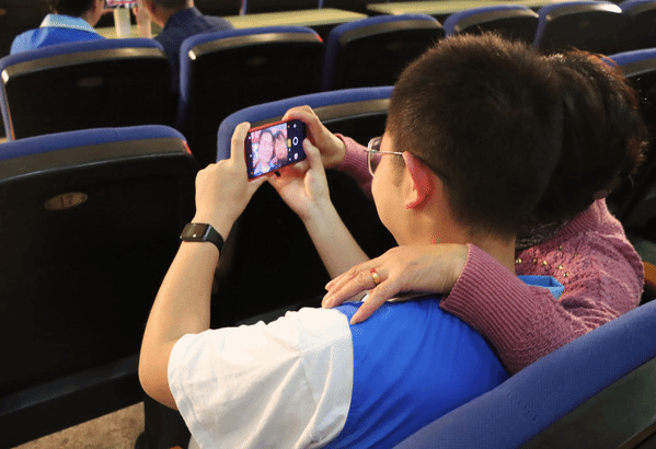 在观看锡剧前,砺香义工站的志愿者们在现场给老年人们详细讲解了手机的基本操作,指导老年人们如何使用手机拍照、打开视频、上传照片、分享朋友圈等等,使他们可以通过智能手机记录观戏过程,分享精彩瞬间。