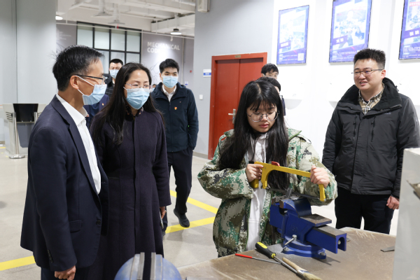 曹国光一行还走访了我校智能制造工程中心,机械制造工程中心,实地调研了学生实训及创新创业情况。