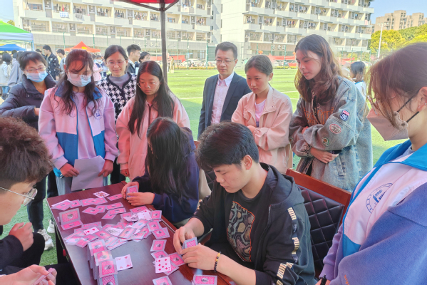 活动前,志愿者们进行了大量的准备工作,进行了全校全方面的广泛宣传。本次活动共有六个项目,分别是“欲穷千里目,更上一层”,“愿所有的分离都各得其所”,“孤独的根号三”,“不要做那只迷途的候鸟”,“蓦然回首,那人却在灯火阑珊处”,现场同学们热情高涨,气氛热烈,积极投入到每一轮的竞赛活动中,极大地增强了对数学的兴趣和数学文化的了解。校纪委书记李衔、基础课部主任王志萍、基础课部直属党支部副书记王兰也来到现场,与老师同学们亲切互动。