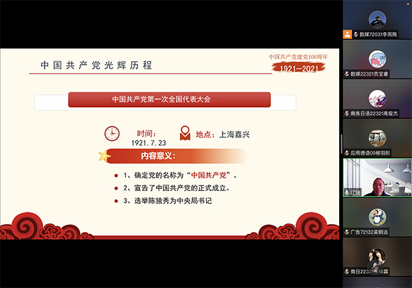 为深入学习贯彻党的二十大精神,用党的百年奋斗重大成就鼓舞和激励广大入党积极分子,切实把好党员发展入口关,设计艺术学院特邀学校关心下一代工作委员会秘书长、讲师团成员江铭同志为2022年第2期分党校培训班全体学员讲授《党的百年光辉历程》专题党课。