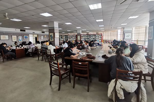 活动由图书馆和心理中心老师指导,现场150余名学生参与编织活动,同学们制作热情高涨,活动持续近4个小时。