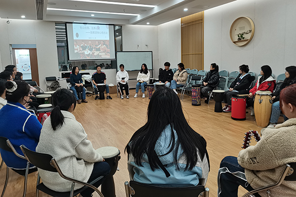 为进一步提升大学生心理健康教育工作成效,探索心理育人的创新工作路径,提升大学生心理健康水平,11月29日下午,来自全校各院系的40余名同学齐聚在心理健康教育中心团辅活动室,开展“悦动鼓圈,鼓舞心灵”鼓圈团体心理辅导活动。