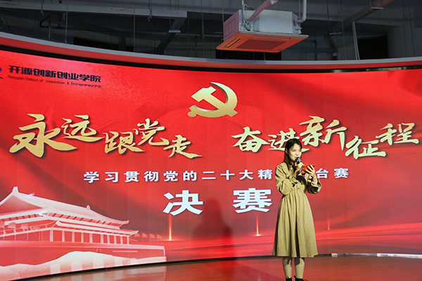 中国共产党第二十次全国代表大会在北京胜利召开,全国上下掀起了学习二十大精神的热潮。为了深入学习贯彻党的二十大精神,推动党的创新理论在青年大学生中入脑入心,重点营造习近平新时代中国特色社会主义思想的浓郁学习氛围和积极实践风气,11月20日至24日,开源创新创业学院举办“永远跟党走 奋进新征程”学习贯彻党的二十大精神擂台赛,面向全体21、22级学生开展理论学习、测试与现场展示。
