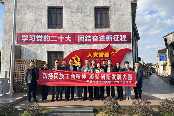 为深入学习宣传贯彻党的二十大精神,传承老一辈民族工商业者的奋斗精神和爱党爱国情怀,凝心聚力服务学院发展,11月4日,财经学院党总支联合开源创新创业学院党总支组织教工赴江苏省历史文化名村严家桥,分别开展了以“寻红色文化,传民族工商文化”及“弘扬民族工商精神,凝聚创新发展力量”为主题的工会活动。