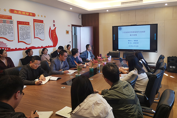 申报书写作技巧方面,浦徐进主要针对科研项目的主题选取和项目申报书的逻辑框架内容做出了详细指导。他指出,项目选题需要结合地理环境、时代背景和科研优势进行细致斟酌,内容方面应重点关注学术史的梳理,进行“综”、“述”、“评”,突出研究方法的熟练掌握度。教师科研能力培育方面,浦徐进就培养教师进行项目申报的积极性和团队协作的重要性方面做出了重要指导,提出应化被动为主动,促使教师踊跃申报各级科研项目,并依托团队力量,教师间相互学习、取长补短、提升协同研究的能力。