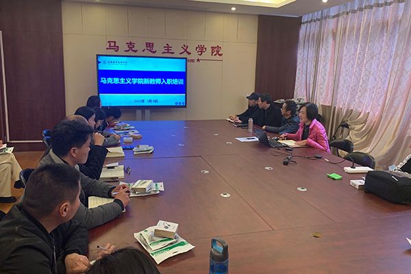 3月8日,马克思主义学院在部门会议室举行新教师培训会暨“青蓝蓝工程”结对仪式,马克思主义学院直属党支部书记赵后起主持会议,新进入职的11位教师和部门指导教师参加会议,在外培训的马克思主义学院院长周春兰以线上方式参会。