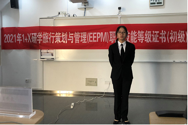为进一步贯彻落实《国家职业教育改革实施方案》和《关于在职业院校实施“学历证书+若干职业技能等级证书”制度试点方案》精神,积极开展“1+X”证书制度试点工作,11月27日,外语与旅游学院在国教院举行“1+X”研学旅行策划与管理(EEPM)职业技能等级证书(初级)认证考试。来自我校外语与旅游学院和其他院校的65位考生参加考试。
