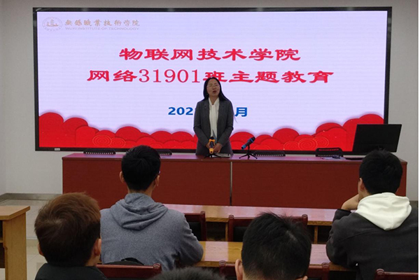 为进一步深化党史学习教育,深入开展“两在两同”建新功行动,在临近学生毕业就业实习的关键时间节点,11月18日上午,副校长杨雪琴走进物联网技术学院网络31901班参加主题班会。物联网学院党总支副书记徐锋、分院相关负责教师一同参加活动。