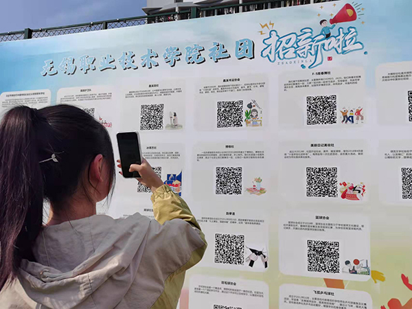 “习近平新时代中国特色社会主义青年学社致力于在青年中传播新思想和新理论,以‘深入同学、关注理论、注重实践’为宗旨……”“青年志愿者协会秉承‘服务学生、服务校园、服务社会’的宗旨,志愿从事社会公益事业……“各个社团的特色展示吸引众多新生驻足观看和咨询。