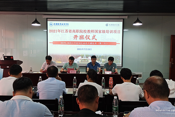 7月19日,由我校承办的2021年江苏省高职教师国家级培训项目—面向智能制造前沿关键技术培训班在控制技术学院202会议室举行了开班典礼。