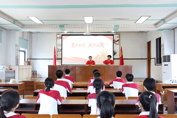 百年党史进课堂,红色故事入人心。7月14日上午,实践团第一站来到江阴华西实验学校,聆听村支书讲党史故事,开展“建党百年、风华正茂”主题宣讲,向中学生现场讲解“党徽”与“团徽”的异同,与学校领导、老师开展座谈交流。实践团12位中外师生成员将党史学习和志愿精神紧密结合,以贴近中学生实际的讲解方式,同中学生一起真正将党史学习教育入脑、入心、入行。