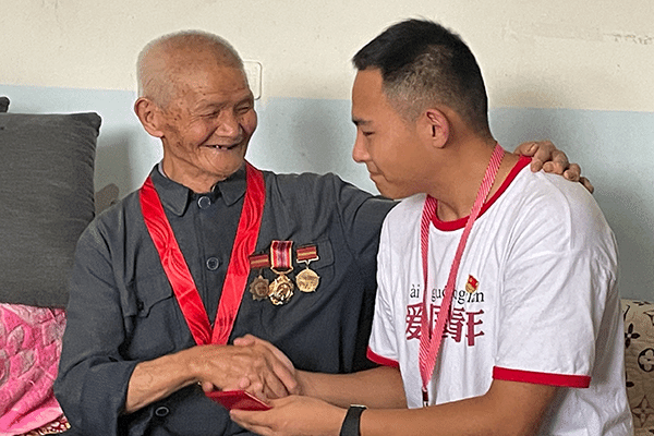 如今,冯老已经96岁高龄,当他回忆起从军往事的时候,这些故事依然历历在目,仿佛就发生在昨天。在我们前去拜访时,他说:“这么多年来我一直坚信,只要跟党走、听党话,幸福的生活一定会来到我们身边。我们那时候当兵每个月也就两毛钱,但是没有人在乎,大家纯粹是为了革命,为了全国的解放。现在我已经老了,九十多岁了,但我依然拥护中国共产党。党和国家培养的你们这些大学生,比我们那时候有文化,希望你们好好地把我们的国家巩固起来,能够为国家贡献出更大的力量。”老人朴实的话语中透露着对党的忠诚和对新时代大学生的殷切希望。