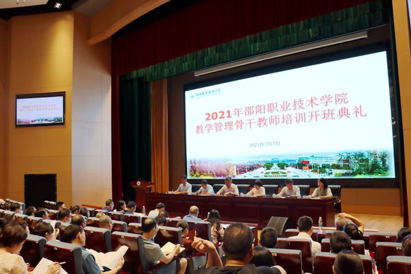 7月7日上午,邵阳职业技术学院教学管理骨干教师培训班在我校综合楼一楼报告厅举行开班仪式。我校党委书记朱爱胜、邵阳职业技术学院教务处长王芳、我校教务处处长胡俊平、继续教育学院副院长曹秀中、财经学院党总支副书记李湘和培训班58名学员参加了开班仪式。