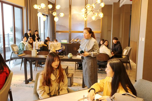随后,学院师生在工作人员引领下参观了酒店的中式大堂、前台、餐厅、观景平台、江南风庭院客房、行政酒廊等设施。作为高端酒店品牌,无锡融创万达文华酒店将江南灵秀的风情和浓郁的人文历史进行了融合,处处体现了人性化服务与“华”文化相结合的使命与担当。通过此次参观交流,全体同学对以“华文化”为核心的融创万达酒店理念有了全新的认识,纷纷表示不仅学到了酒店知识与服务礼仪,开拓了专业视野,也进一步明晰了今后职业生涯规划的定位。