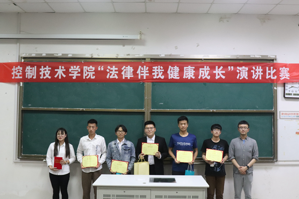 5月16日晚19:00,控制技术学院“法律伴我健康成长”演讲比赛决赛在至善楼E401举行,控制技术学院分团委庞军老师和分团委学生会主席团应邀担任决赛评委。