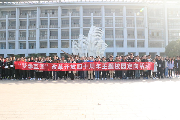 11月27日下午,以庆祝改革开放40周年为主题的“共绘梦想蓝图”校园定向暨素质拓展活动在乐鱼app登录入口校园内举行,主会场设在万迪文化广场。本次活动由乐鱼app登录入口控制技术学院分团委主办,“无锡市十佳学生社团”橄榄绿军事爱好者协会和毅行社承办,校内诸多知名学生社团协办。主持并参与活动的老师有控制学院党总支副书记朱倩、机械学院学工办主任花树洋、控制学院学工办主任任重威、分团委负责人庞军。